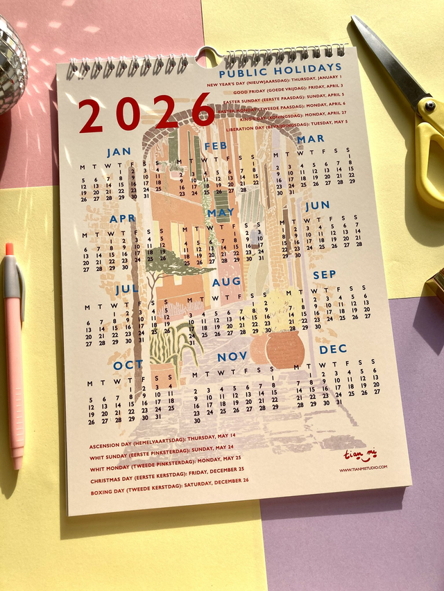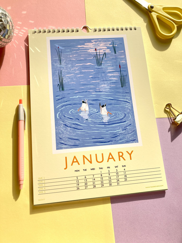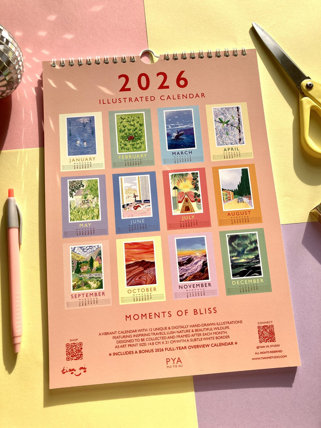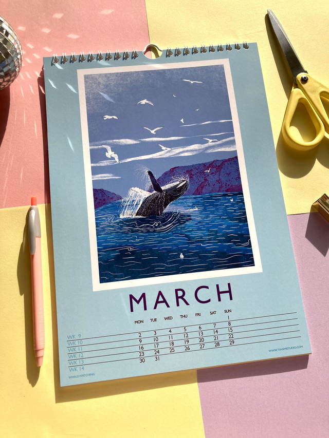 Dimensions: A4 Calendar with A5 art prints (14.8 x 21 cm with subtle white border) for you to collect and frame after each month.